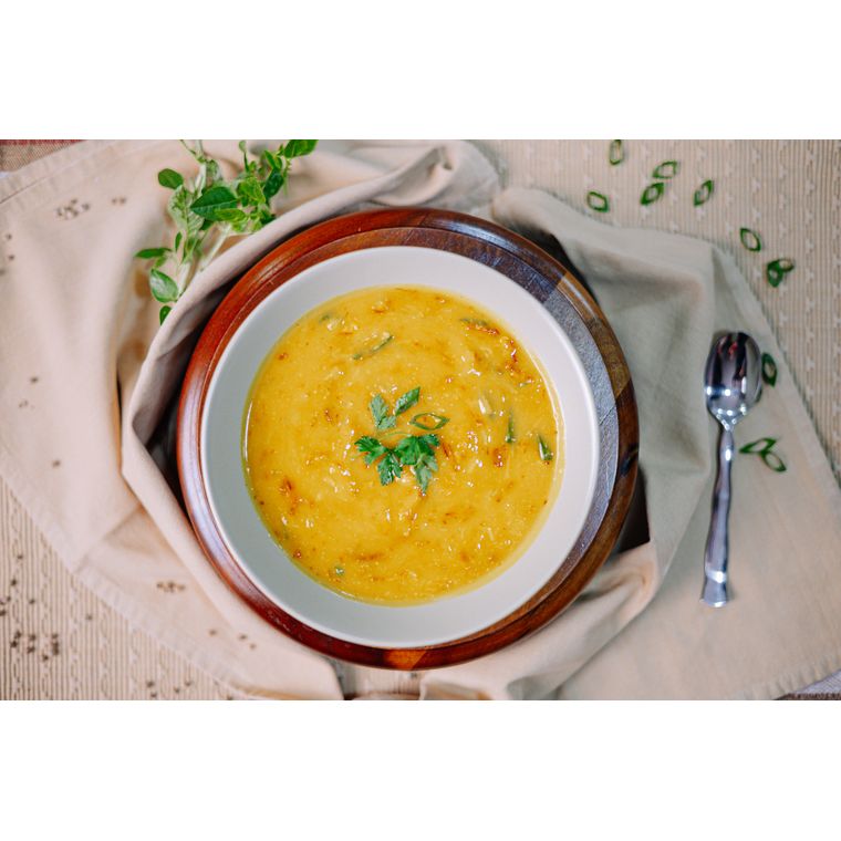Nossa sopa de abóbora com carne de sol aquece com gostinho de Brasil e um toque suave de gengibre.